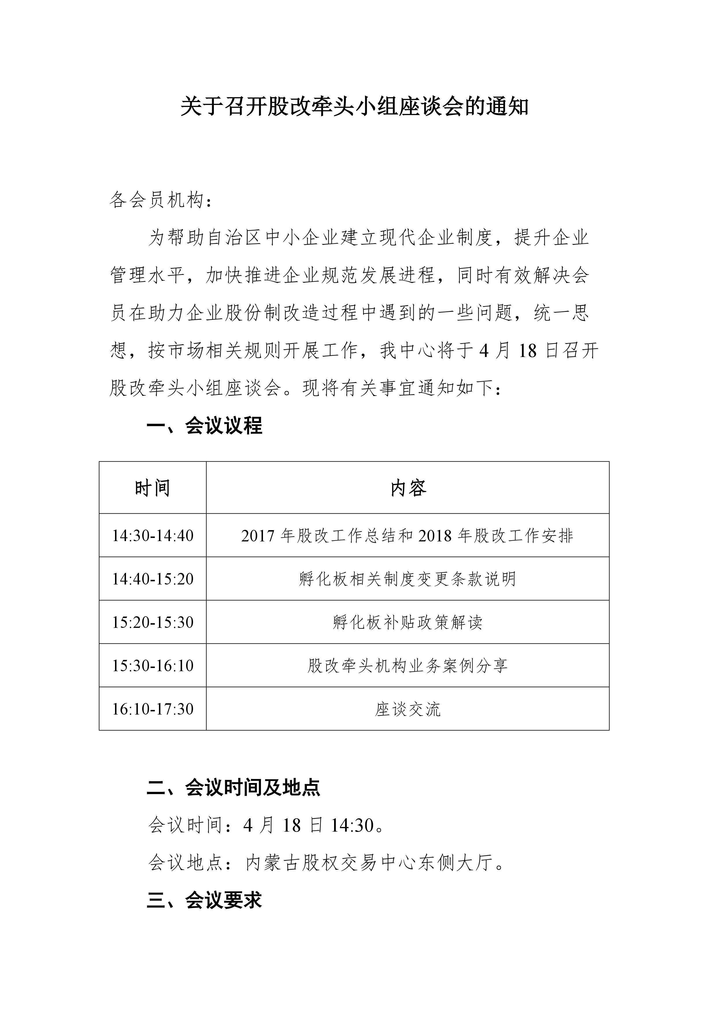 关于召开股改牵头小组座谈会的通知