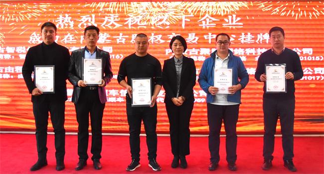 10月30日上午,由呼和浩特市蒙盈投资有限责任公司、内蒙古股权交易中心(以下简称“中心”)主办的企业集体挂牌仪式在中心隆重举行。来自内蒙古农牧业机械行业协会等机构40余位的企业代表参加活动。出席本次活动的嘉宾有内蒙古农牧业机械行业协会主任赵静、内蒙古贝莱特产业引导基金管理有限公司总经理郭迎春、内蒙古先行品牌策略有限责任公司副总经理崔俊平、内蒙古蓝筹融资担保股份有限公司经理陆薇、内蒙古中小企业联合发展商会郝建文、呼和浩特市蒙盈投资有限责任公司总经理侯静茹、内蒙古股权交易中心副总经理李相蓉。