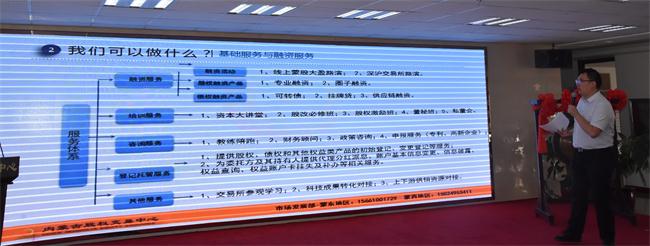 会上,举办了企业集体挂牌仪式。中心项目经理就企业挂牌后能享受到的融资、培训、咨询等方面的服务内容向参会企业进行了介绍。