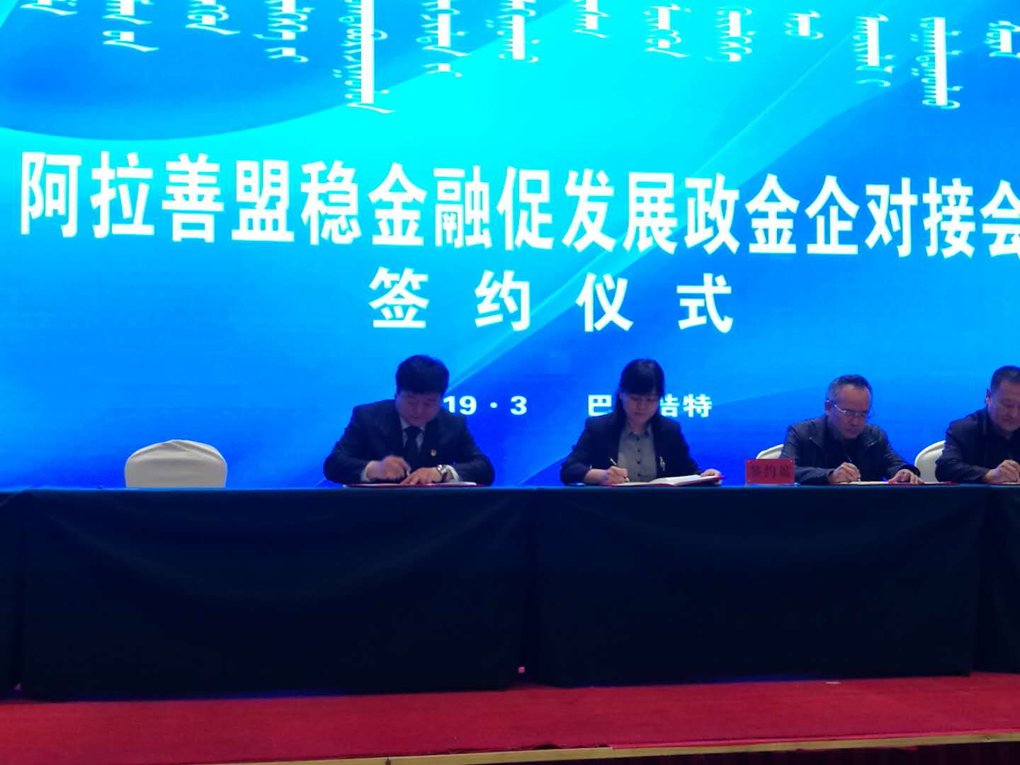 为全面贯彻落实中央、自治区和阿拉善盟委行署关于着力破解重点领域融资难融资贵问题,构建“政金企”协同发力的工作机制,实现阿拉善盟金融经济良性循环。2019年3月26日,阿拉善盟“稳金融、促发展”政金企对接会在巴彦浩特召开。
