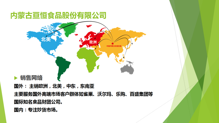 *公司是巴彦淖尔市第一家引入无壳南瓜籽并大量发展农民种植、经营等综合服务的南瓜籽出口的外贸企业——产品主销欧洲,北美,中东,东南亚等地区。面向国外高端市场,客户群体,雀巢,沃尔玛,乐购,百盛集团等国际知名食品财团公司。
