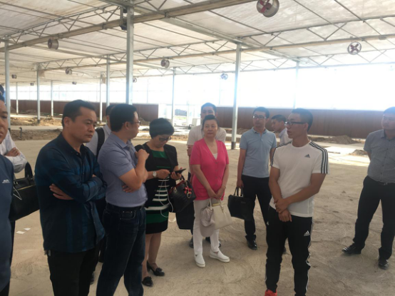 图为:“加速器”团队参观商都县的华盛绿能在建的科技生态大棚