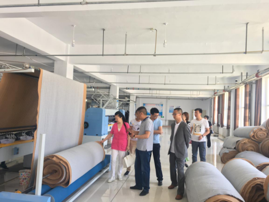 图为:“加速器”团队走访化德县服装园区达远制衣生产车间
