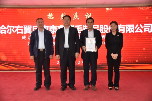 察哈尔右翼后旗康鑫绒毛制品股份有限公司授牌仪式