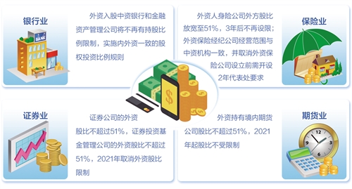 2017年11月份,财政部对外透露了未来金融业对外开放相关部署:证券、基金、期货投资比例限制放宽至51%,3年后不受限制;对中资银行和资管公司取消外资单一持股不超过20%、合计持股不超过25%的限制,实施内外一致的银行业股权投资比例规则;保险业3年后外资投资比例放宽至51%,5年后不受限制。如今,承诺已开始兑现。