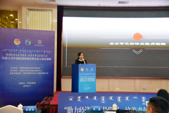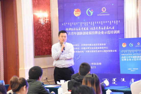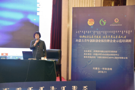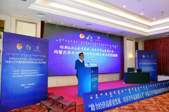 为精准服务自治区创新创业企业,帮助创业青年掌握企业运营相关知识,全面提升创业经营能力,为创业青年、青年创业项目和初创企业提供孵化培育、规范辅导、挂牌展示、投融资对接等综合金融服务,11月1日-5日,由自治区团委主办,内蒙古青年创业就业服务中心承办和内蒙古股权交易中心(以下简称“中心”)作为服务承接机构的内蒙古青年创新创业板(以下简称“青创板”)挂牌企业示范培训班在呼和浩特市成功举办。内蒙古青年创业就业服务中心负责人斯日格楞部长出席了本次会议。来自自治区12个盟市的青创板挂牌企业代表和各盟市共青团委推荐的拟挂牌企业代表100余人参加了本次培训。