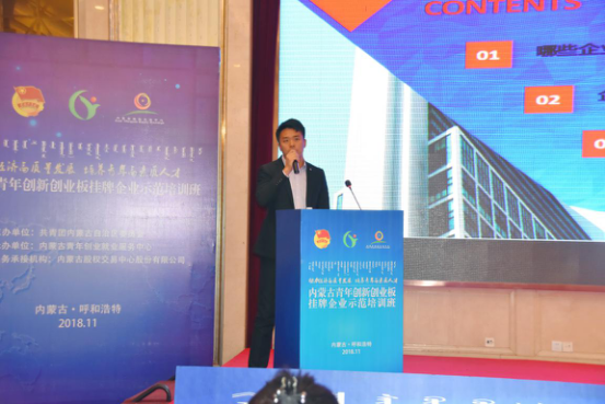 内蒙古股权交易中心蒙东市场发展部总经理姚耀讲述《商业计划书拟定与创业路演》