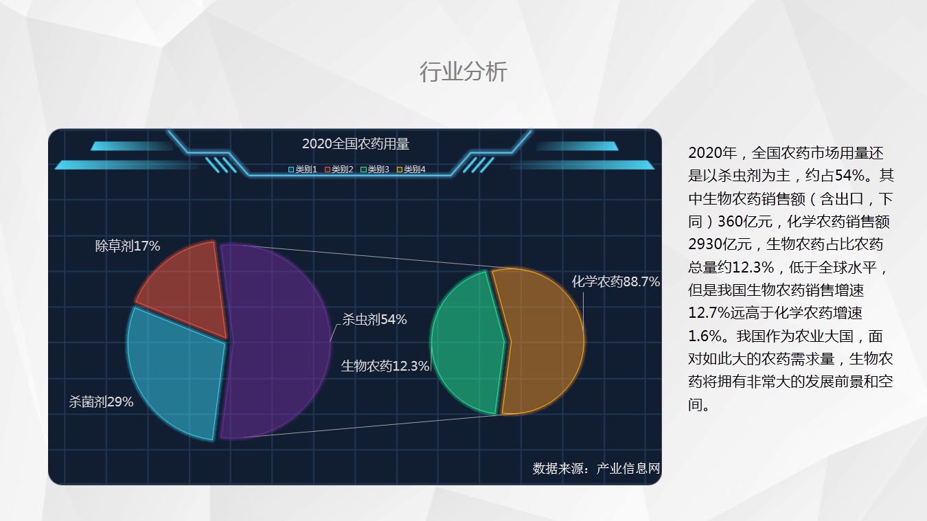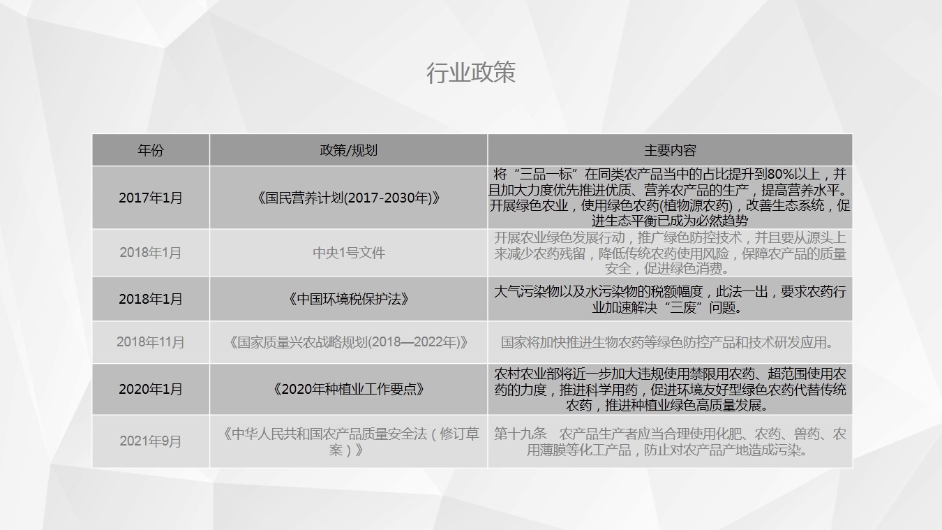 4、相比传统农药,植物源农药低毒、易降解,杀虫机理独特、应用场景广阔,目前我国生物农药占比农药总量仅约12.3%,低于全球水平,而生物农药销售增速为12.7%,将拥有非常大的发展前景和空间。