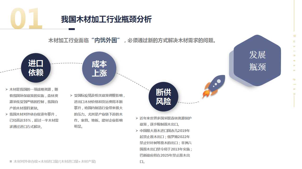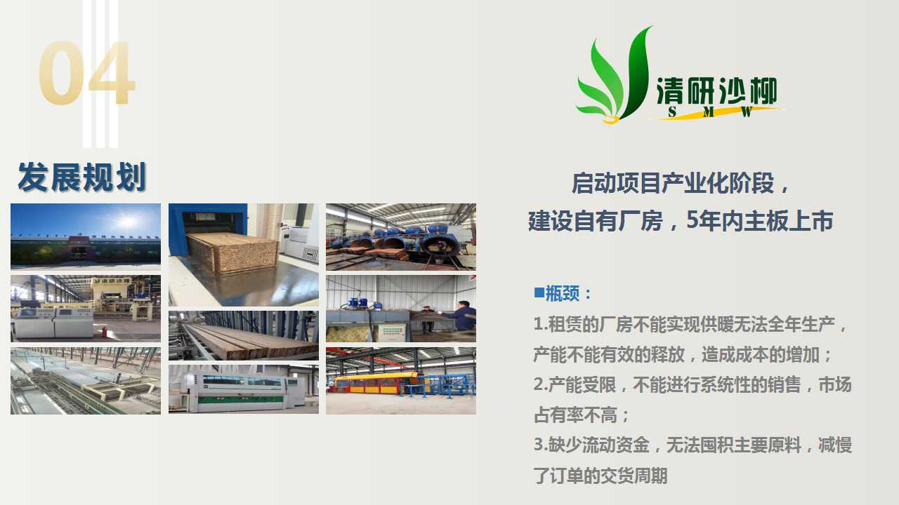 关注市场需求结构以及实木替代领域和周期性。关注重组木产品的性能指标,而不仅是原材料的属性,近几年新型石化材料不断涌现,性能指标和替代领域不断扩大。建议从在产品性能角度考量市场,竞争对手也不仅限于密度板或胶合板,而可能是其他化工类、矿石类或其他新材料。无论是实木或沙柳都有原料种植属性,取材加工一定程度上受天气等自然条件和运输半径制约,关注原料质量的可持续控制。新材料替代的核心在于降成本和高性能,建议关注材料的性能和成本优势。从产品端考虑最终拼的还是市场,另外对该产品的固碳价值,需要更权威的机构来认定。