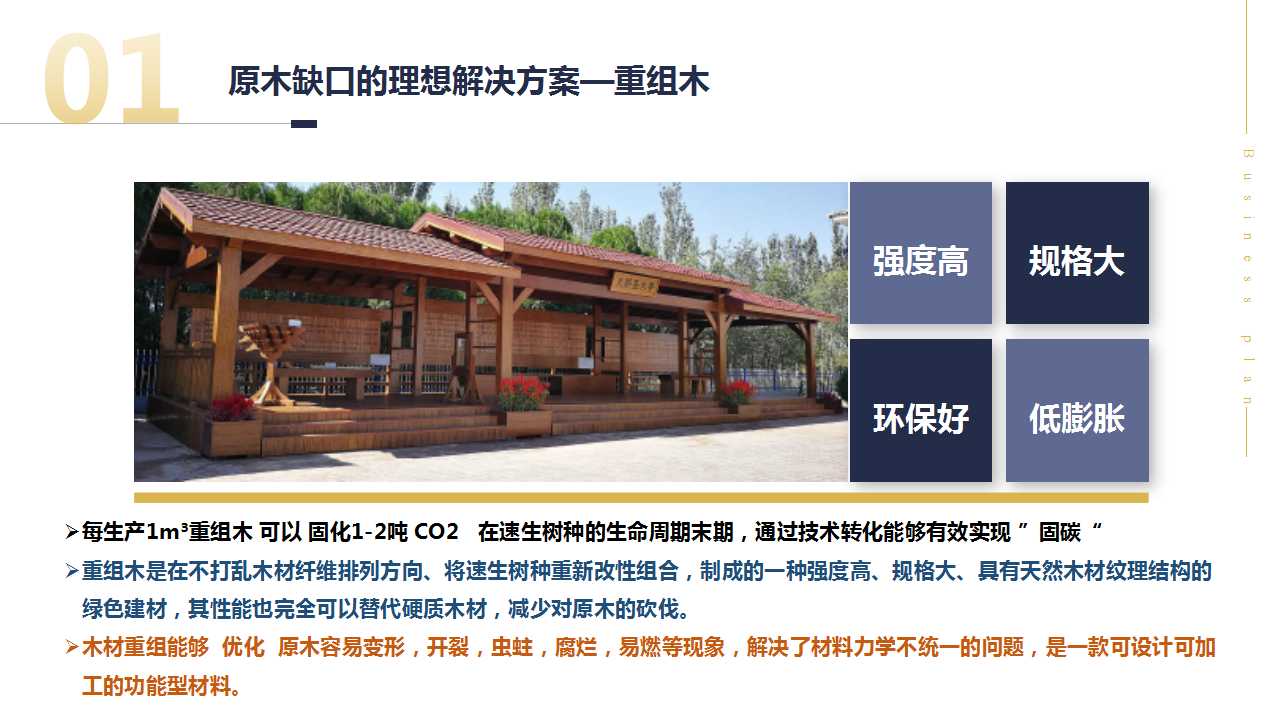 1、公司自主研发的高性能重组木材生态固碳技术已经纳入国家绿色技术推广目录2020,该技术制成的一种强度高、规格大、具有天然木材纹理结构的绿色建材,其性能也完全可以替代硬质木材,减少对原木的砍伐。